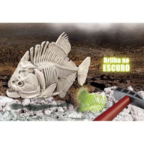 • Escava como um paleontólogo real usando as ferramentas fornecidas no kit e encontra os restos fossilizados da temível Piranha pré-histórica.