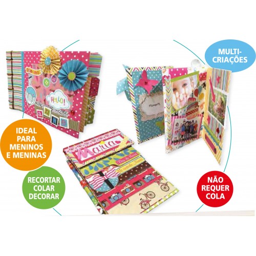 Um conjunto completo com todo o material necessário para fazer álbuns fantásticos de vários tipos e tudo o que a tua imaginação for