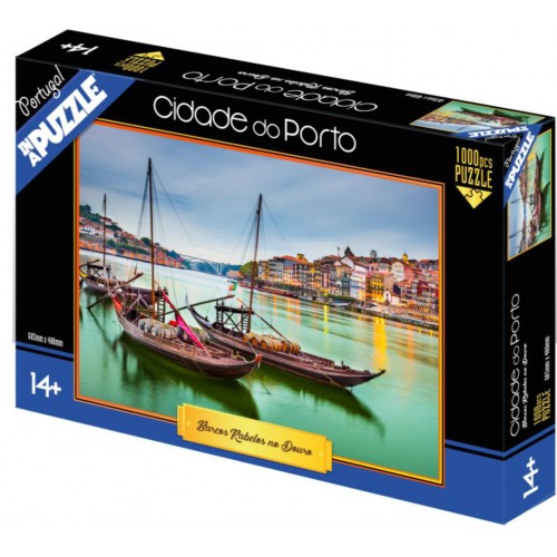 Puzzle de 1000 peças, sobre uma imagem dos barcos rabelos no douro. Os Rabelos eram os barcos usados no transporte do vinho desde o alto douro vinhateiro, até aos armazéns em Gaia, para serem vendidos para todo o mundo. Hoje os rabelos são usados como atração turística, transportando turistas entre as pontes das margens do rio douro.