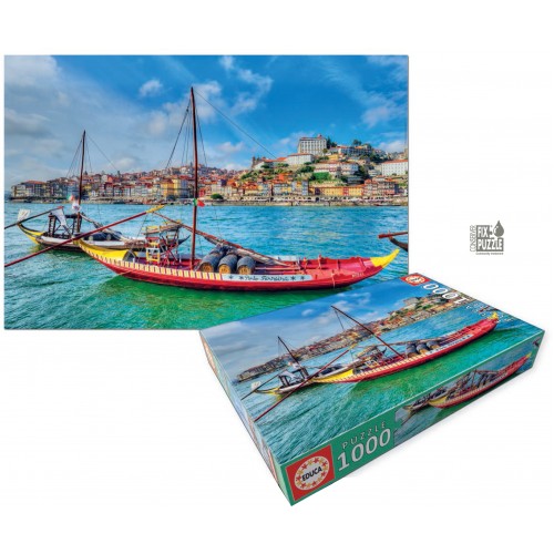 Puzzle de 1000 peças, sobre uma imagem dos barcos rabelos no douro. Os Rabelos eram os barcos usados..