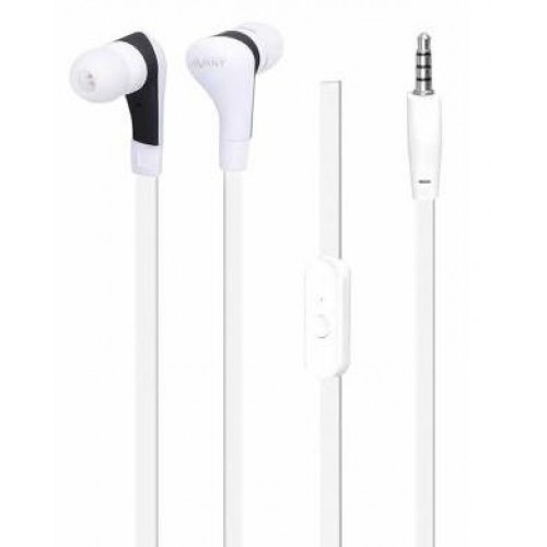 Auricular IN-EAR silicone com microfone com cabo tipo corda branco..