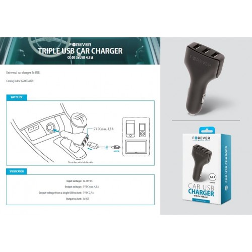 Adaptador auto 3 USB 4,8A 3CC-05